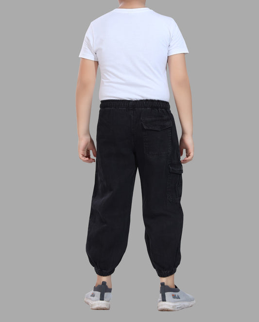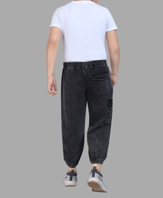 Boy's Joggers Fit Black Denim Jeans 100% Cotton - Comfortable & Stylish with Drawstring Waist 3020