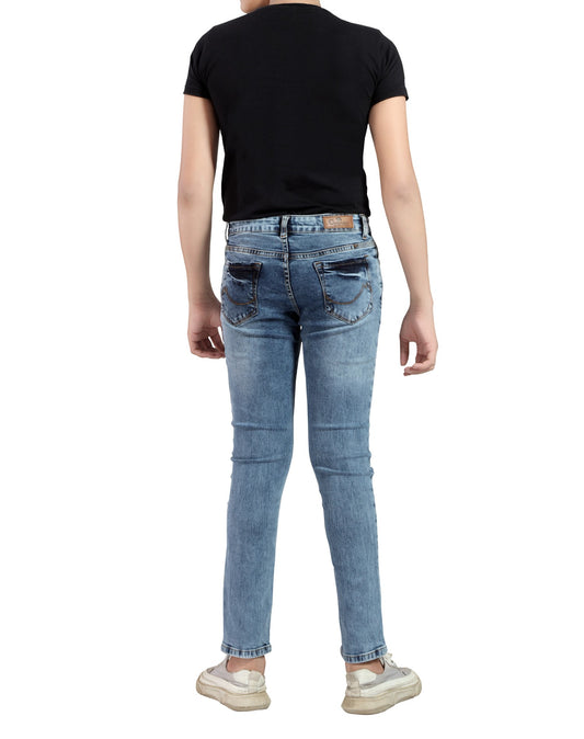 Boy's Slim Fit Stretch Blue Denim Jeans (80-99% Cotton, 1% Elastic) - Comfortable & Stylish 3013